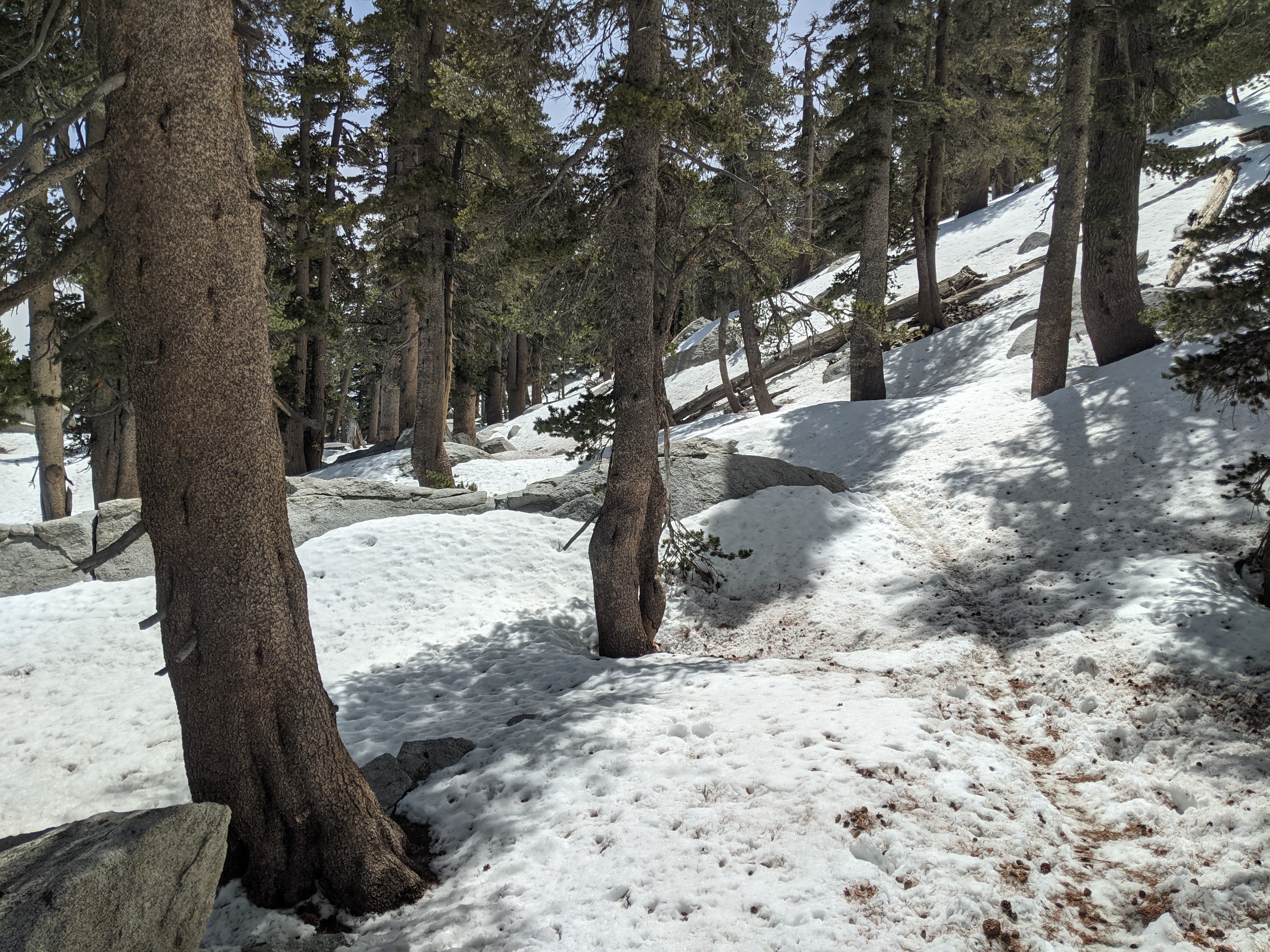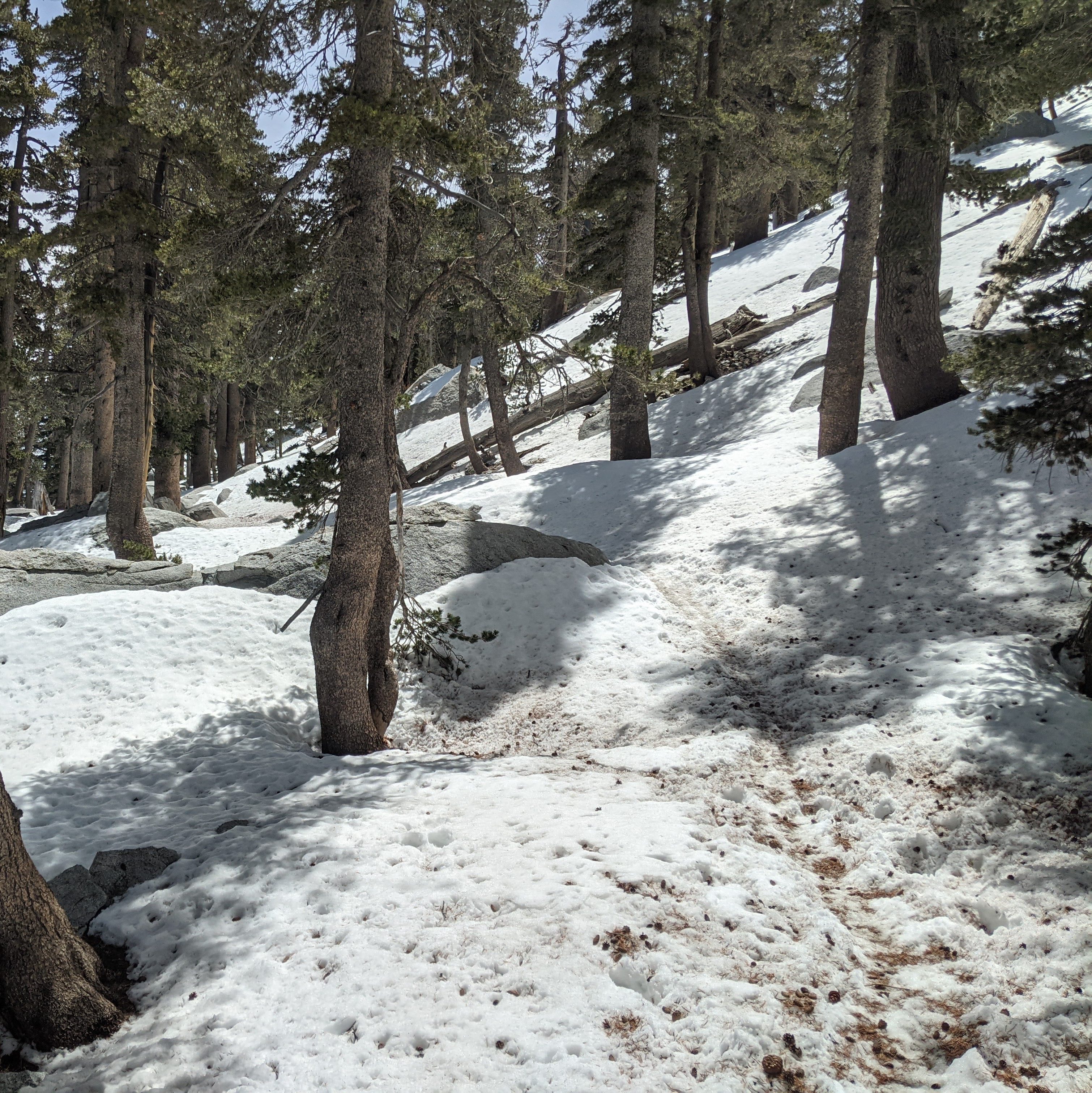 I made the gametime decision to not take any snow specific gear beyond folding z-style hiking poles and I did not wish I had microspikes or an axe for any section. A few weeks prior I may have needed them.