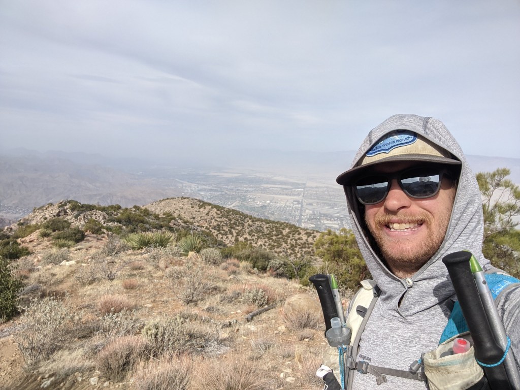 Starting at my car, I climbed the eastern facing slopes of San Jacinto, overlooking the city of Palm Springs. Preceding sunrise I caught a faint easterly glow of light. When sunrise hit I was already a few thousand feet up and well into my day.