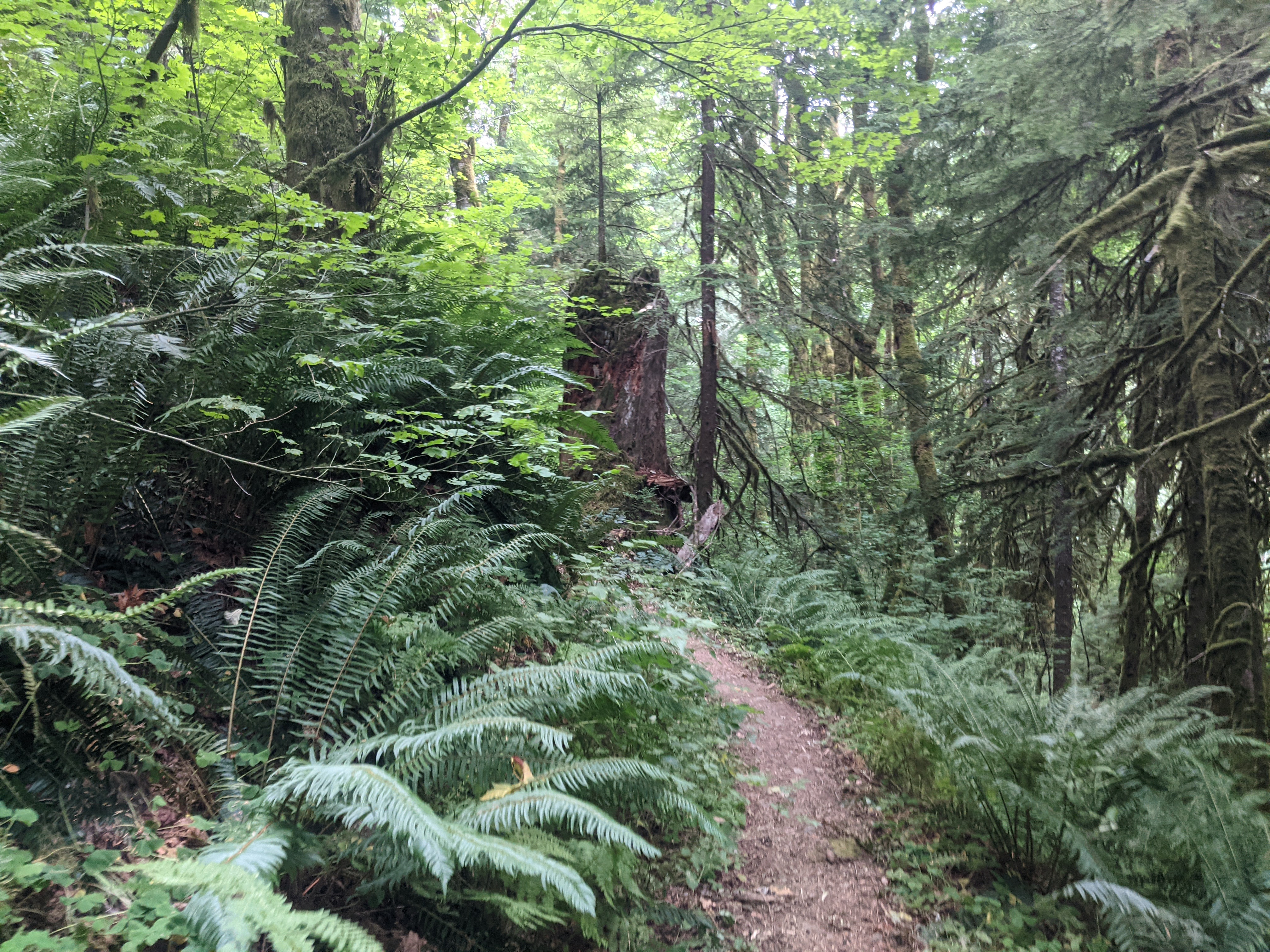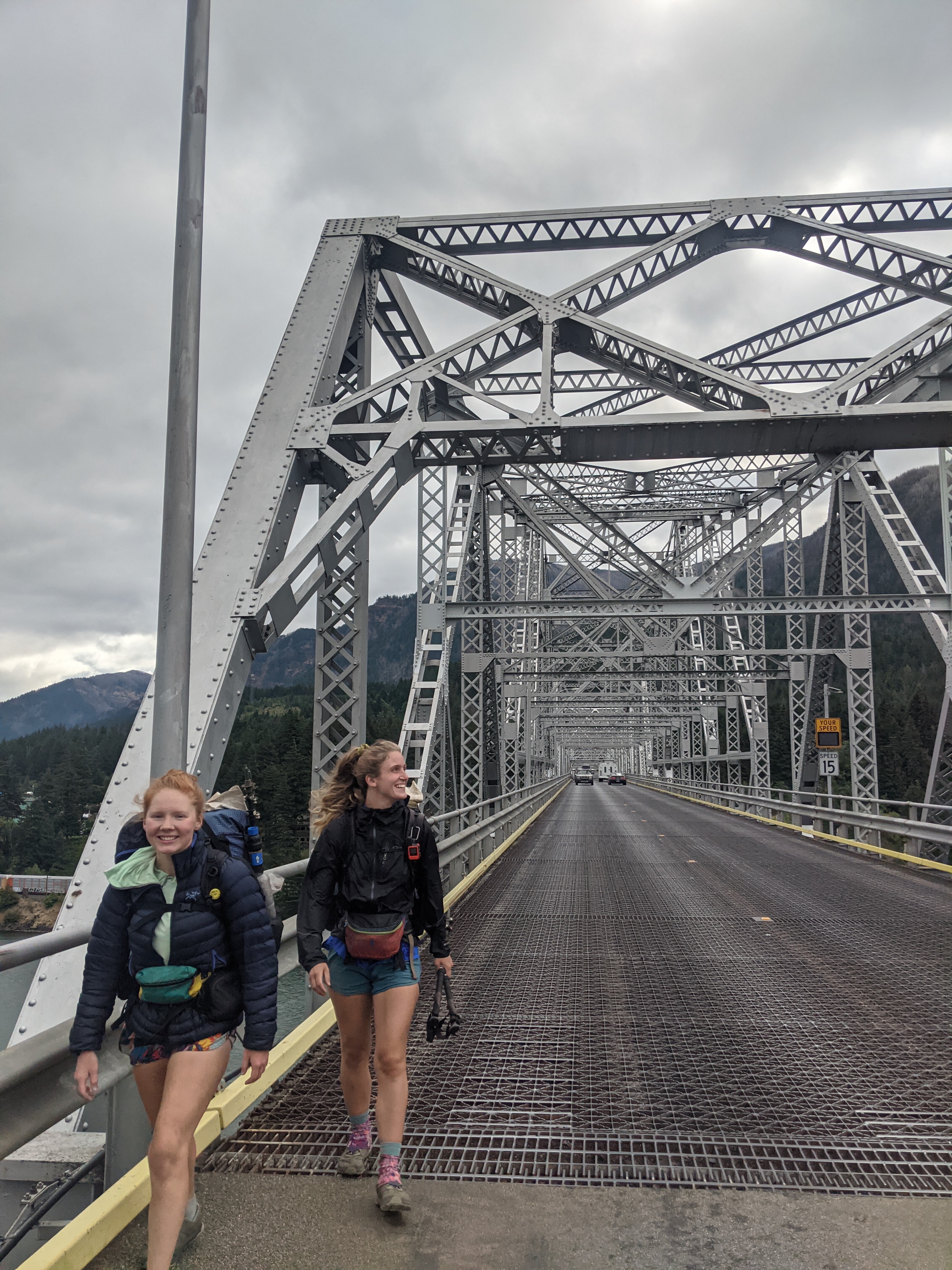 First day back on trail after my family reunion when I took 10 days off. I hung around the PCT days Thursday night to Saturday morning. This morning I headed out around 10am with Rugrat and Ebay after a good breakfast at the bridgeside in Cascade Locks. It was hard to get going from the comfort of the indoors. We crossed the bridge of the gods and got some trail magic from a car driving across. Welcome to the evergreen state!! After a few photos we started walking. We kept a decent pace but Rugrat and I ended up leaving ebay early on. Sorry! We chatted most of the day. We crossed a few open logged areas which was pretty cool with good views. It felt good to be back on trail and right away everything was so green, tons of ferns! The weather was overcast all day but it never rained on us. Cool temps kept us walking but towards the end it was getting me a bit down. We got benighted pushing the last few miles, finishing with headlamps around 9pm. We are sleeping on a flat spot next to a car where some nice folks are camping in a camper. They offered us hotdogs but we didn’t need em. They let us use their camp chairs which is a real luxury. It’s good to be back on trail but I certainly felt today’s miles more than I thought I would. I’m tired!!